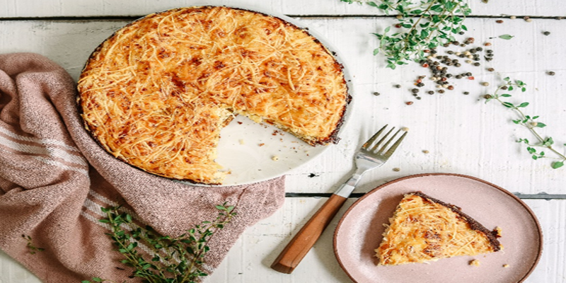 - Na torta pré-assada, acrescente a couve flor cozida e picada, o frango desfiado e o requeijão. Polvilhe o queijo parmesão e leve novamente ao forno para gratinar. Sirva em seguida.